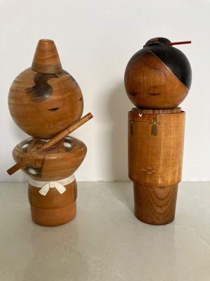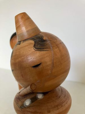 I was so thrilled to find this fabulous c.1960 vintage kokeshi here in Wellington, New Zealand. It is a sosaku kokeshi, which are creative original kokeshi inspired by traditional kokeshi but not bound by the same strict regional forms.