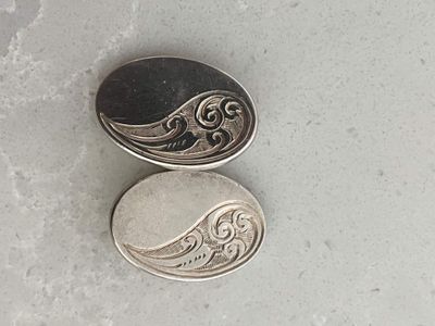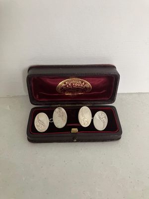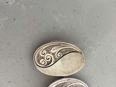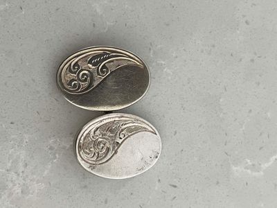 These elegant sterling silver cufflinks were assayed in Birmingham in 1911, but given the repeated koru design I think it is likely they were made for a New Zealand retailer. They are in excellent condition, one side has a tiny pinprick indentation but they are otherwise perfect. They would be a lovely addition to any cuff and a particularly thoughtful gift.