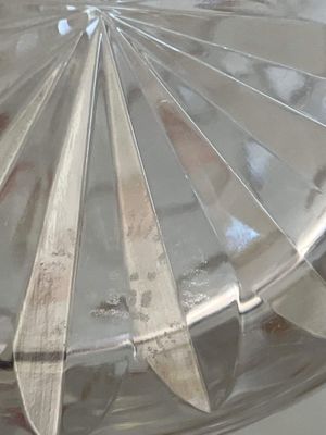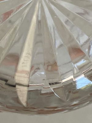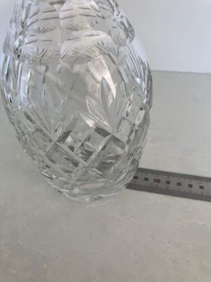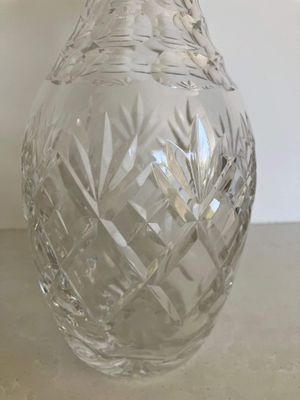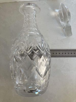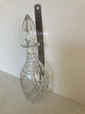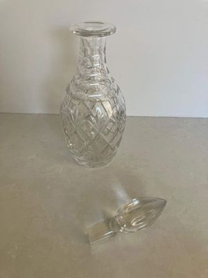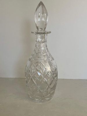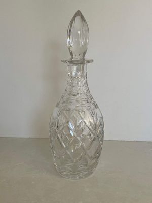This vintage decanter is in excellent condition and will add style to any bar cart or dining room. It is part of Royal Doulton's "Georgian" Collection. It is hand blown and has a beautiful design in the cut crystal incorporating diamond cuts, with fan cutting and lens cuts. It has a solid faceted stopper. It is signed to the base.