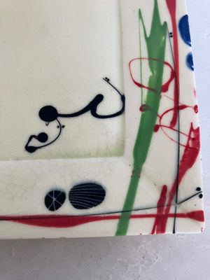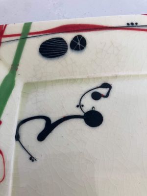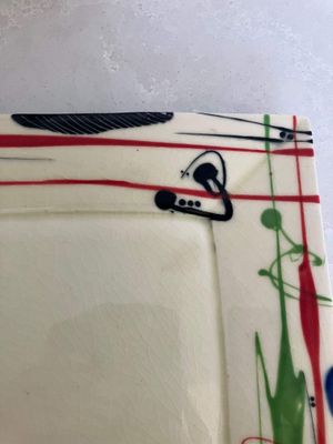 I’m a devoted fan of New Zealand art in all its forms. Finding this beautiful plate by Campbell Hegan was a real thrill. He has been working with the medium since at least the late 1970s and I especially like this recent work with its painterly qualities. You can certainly see the influence of abstract expressionism. It also reminds me of the slightly earlier work of Joan Miró and Alexander Calder. It is signed on the back. There are no cracks, chips or repairs but there is some surface crazing, which is to be expected. It would be a lovely addition to a ceramics collection, for display or for use.