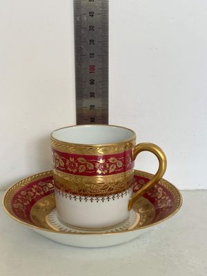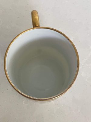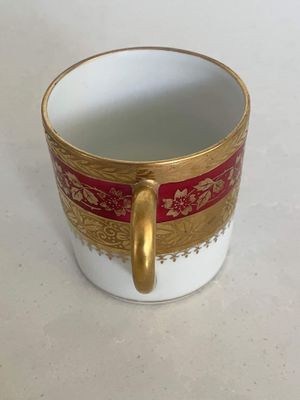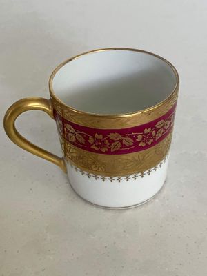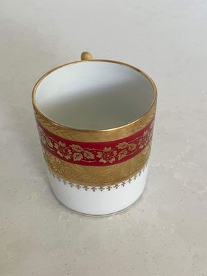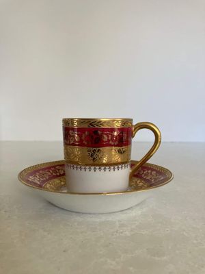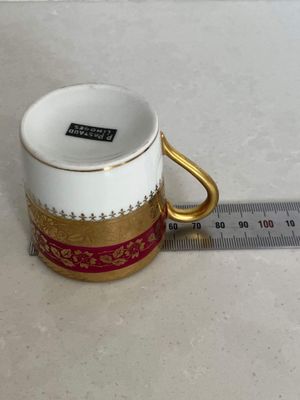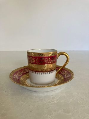 This stunning demitasse duo would be a lovely vessel for your morning espresso. This vintage pair was made in by P. Pastaud, Limoges, France. The lavish use of gold gives a real sense of luxury. It is in excellent condition with no repairs, chips, cracks or crazing. There is a very minor area of wear on the gilding of the saucer, which is shown in the photographs.