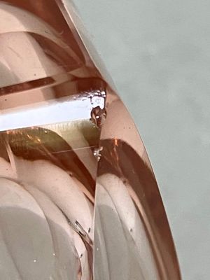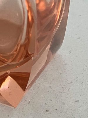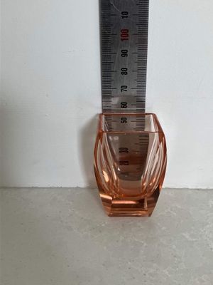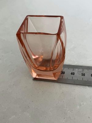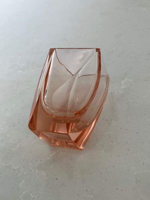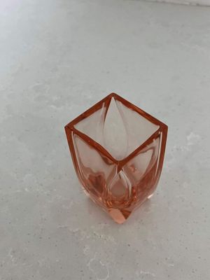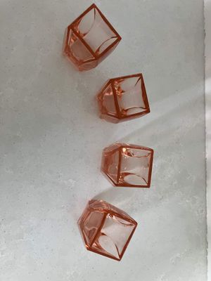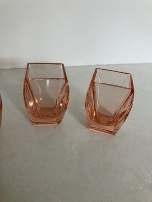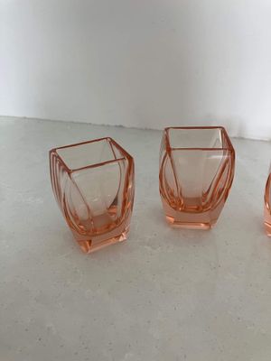 I love the quintessentially art deco peachy pink hue of these shot glasses. They are most likely of Czech origin. They are small but sculptural and perfect for a vodka shot or a liqueur. There are a few minor flea bites to the sides of a couple of the glasses, consistent with age and use.