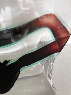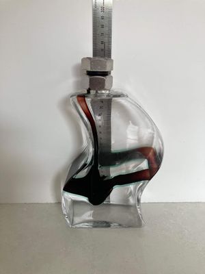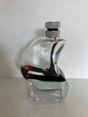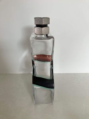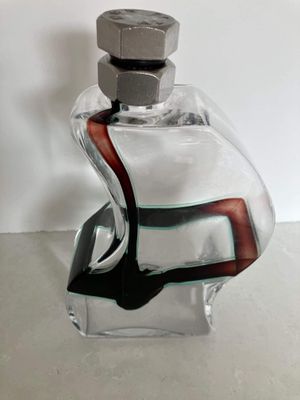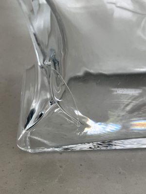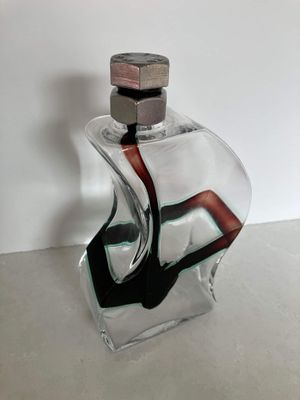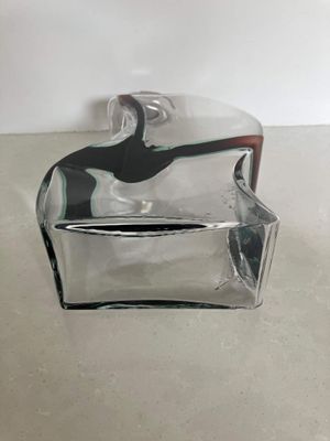 I was immediately drawn to the bolt lid and curved body of this fabulous Kosta Boda Macho decanter. It was designed by Kjell Engman (1946 - ) for the Swedish firm Kosta Boda. The design was produced between 2000 and 2011. The style of this piece is unmistakable. It isn't signed which I think may imply it is a second as the majority are signed. There is a folding to the glass at one corner that might be perceived as a minor flaw but it doesn't detract from the design in my opinion. The fact that it may be a second is reflected in the price.