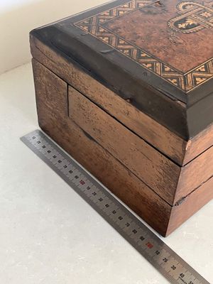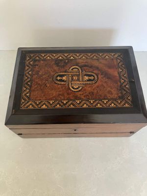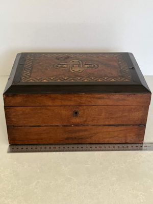 Fabulous Victorian walnut marquetry box - writing, sewing and jewellery