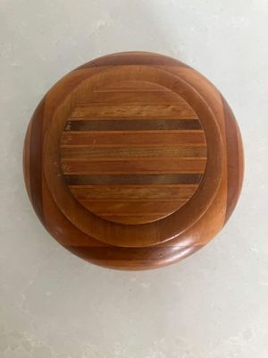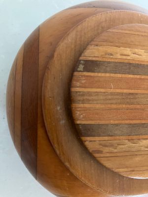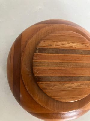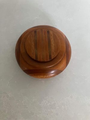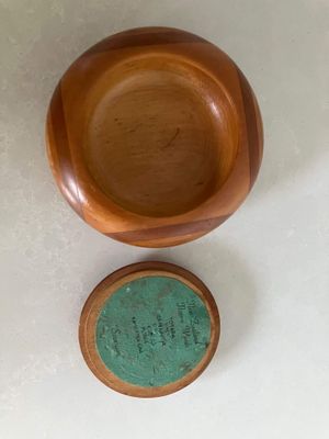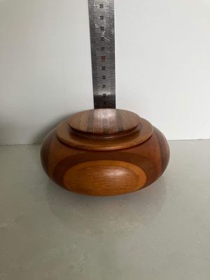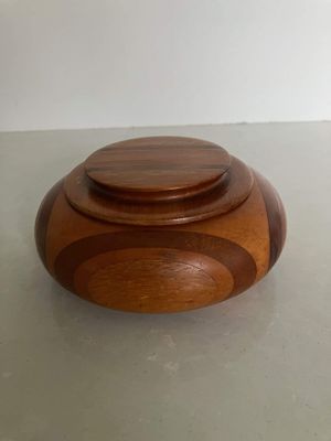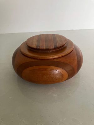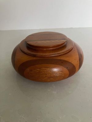 Mid-century Sovereign native timber marquetry lidded trinket bowl