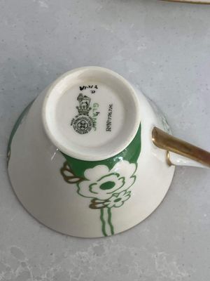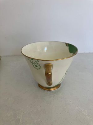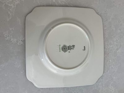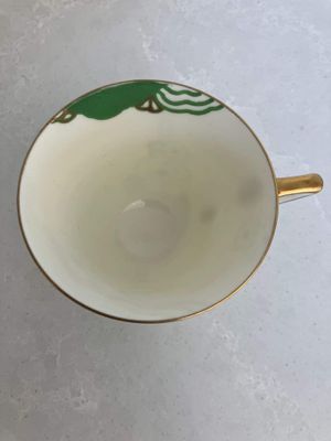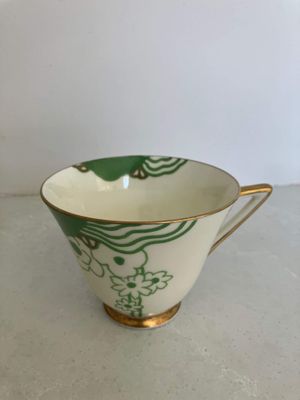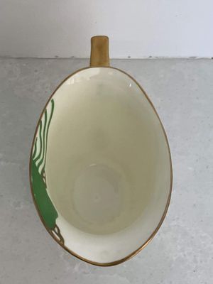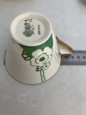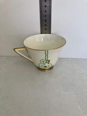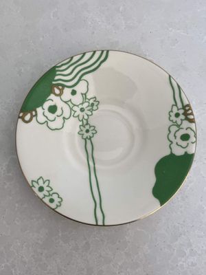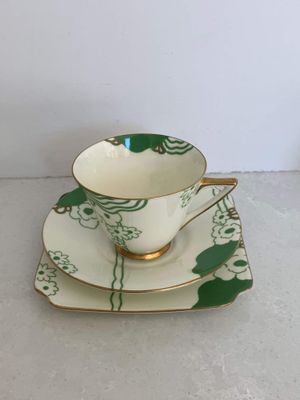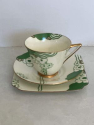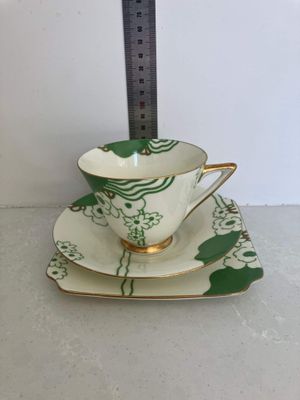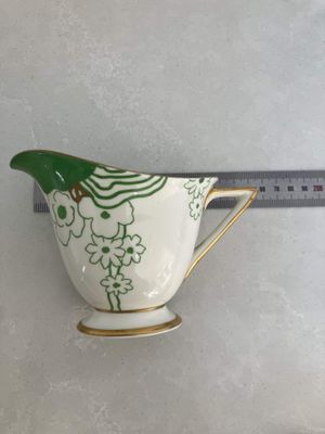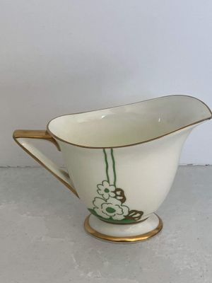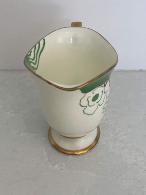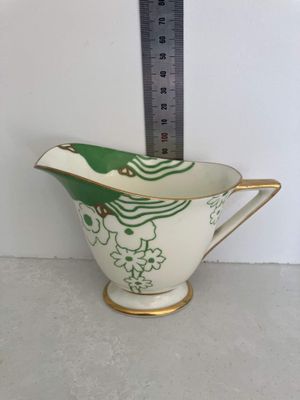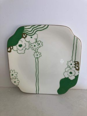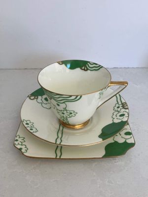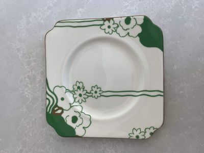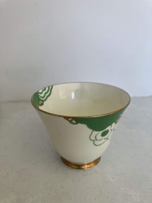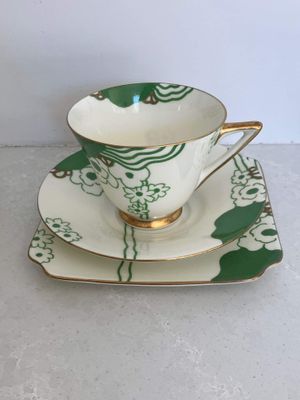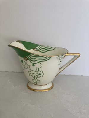 The unique shape and painterly green and gold design on this Art Deco Royal Doulton ‘Glamis’ pattern part tea set is so elegant. It dates from the 1930s and is in wonderful condition. I’m always tempted by Royal Doulton china in good condition and Art Deco was my first love back in the 1990s so it was sure to come home with me. The partial set includes a cake/sandwich plate, milk jug and four trios. If you would prefer to purchase pieces separately, please get in touch directly.