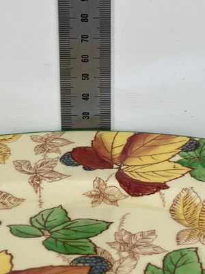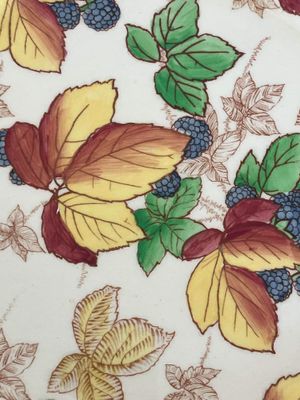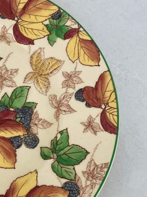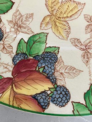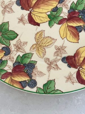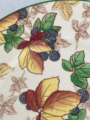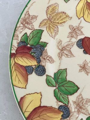 The fabulous blackberry design on this plate features a transfer base, which has then been painted by hand to highlight the large leaves and flowers. I have seen a number of these and rarely is the colour this good. The plate has a green rim and is in excellent condition, though there is crazing which is very common on these pieces. It would be lovely on display or in use. Made in 1937, this stunning vintage piece would be a lovely addition to a collection or would be a lovely focal point on a plate wall.