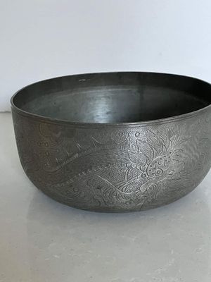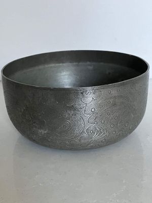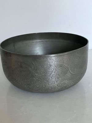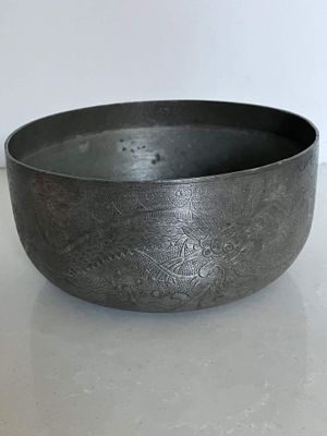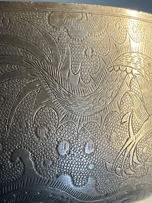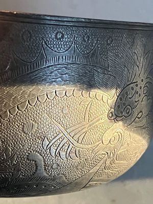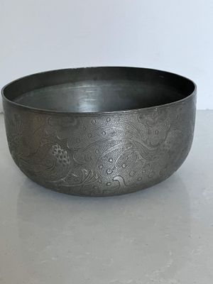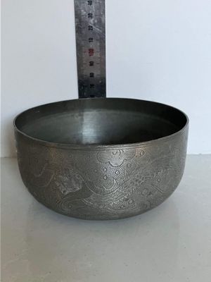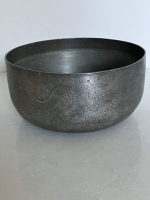 Beautiful antique pewter bowl engraved with dragon design - Kut Hing Pewter, Swatow, China
