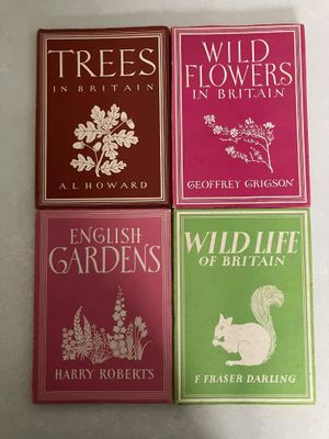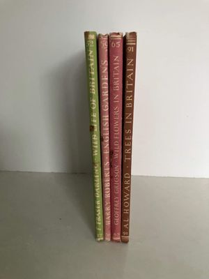 This group of four bright and cheery titles is from the Britain in Pictures series. They were designed as a morale booster and record of English life and culture during the dark days of World War II. These Collins publications began in 1941 and 132 titles were produced in total, each by an expert in their field. I was immediately drawn to the bold colours and simple elegant design of their covers. The contents within are equally delightful. These four date from 1943 to 1946. All still have their dust jackets and are in good condition overall. There is some minor foxing and age related wear to all and a small stain on the edge of some pages in Wild Flowers in Britain. They are available as a set for NZ$95 or individually for NZ$27, please make your selection from the drop down menu.
